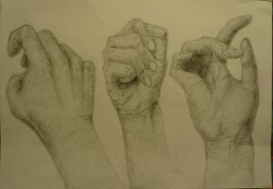中央高校1年生、在籍5か月右手のデッサン90分